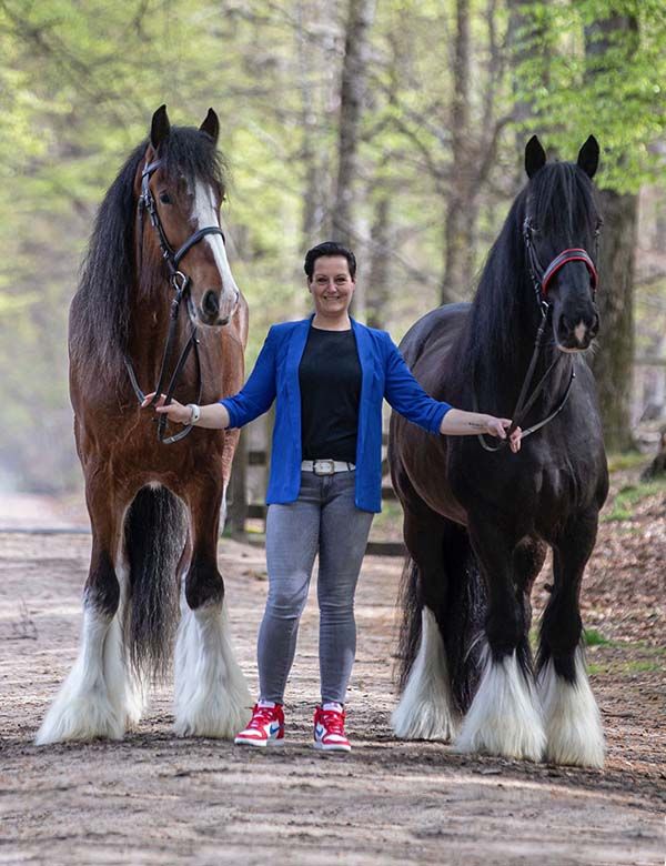 Mijn naam is Dana Scheepbouwer en al sinds ik mij kan herinneren heb ik een sterke voorkeur voor de grote koudbloedpaarden. Zelf heb ik inmiddels twee Shires, waar ik dressuur matig mee rij en waar ik door de jaren heen ernorm veel van geleerd heb, wat soms het nodige bloed, zweet en tranen gekost heeft (en soms nog steeds kost ;). Tijdens onze ontwikkeling zijn we tegen diverse uitdagingen aangelopen. Denk hierbij aan het niet kunnen aanspringen in galop, het scheef ontwikkeld zijn, beide onze voorkeurskant naar dezelfde kant hebben en het niet kunnen vinden van een passend zadel waarmee wij beide op de juiste manier aan onszelf konden werken.